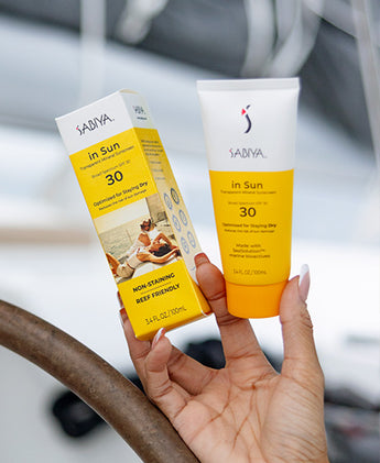 SABIYA in Sun mineral sunscreen is designed for daily use, and helps nourish and regenerate your skin. SABIYA sunscreen is made with SeaSolution™ and without chemicals that harm your body or stain your clothes.